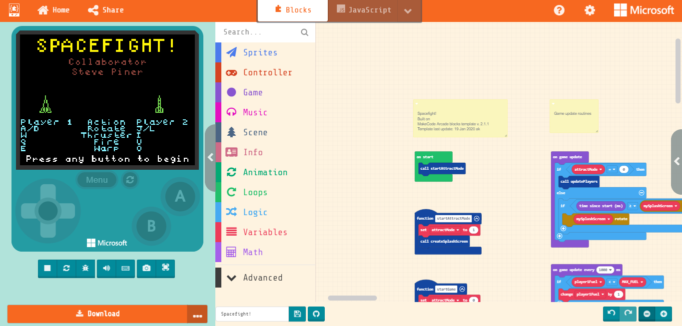 Game controls in MakeCode Arcade