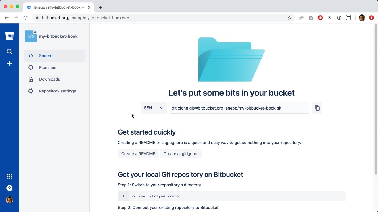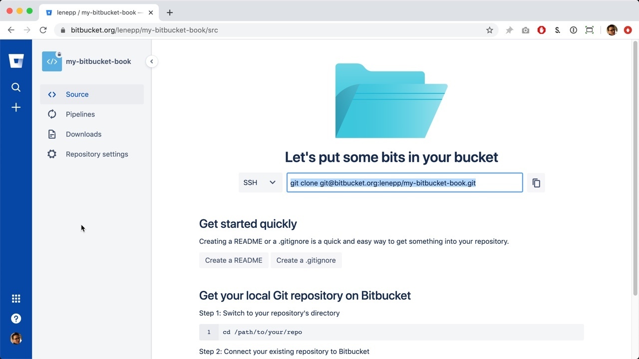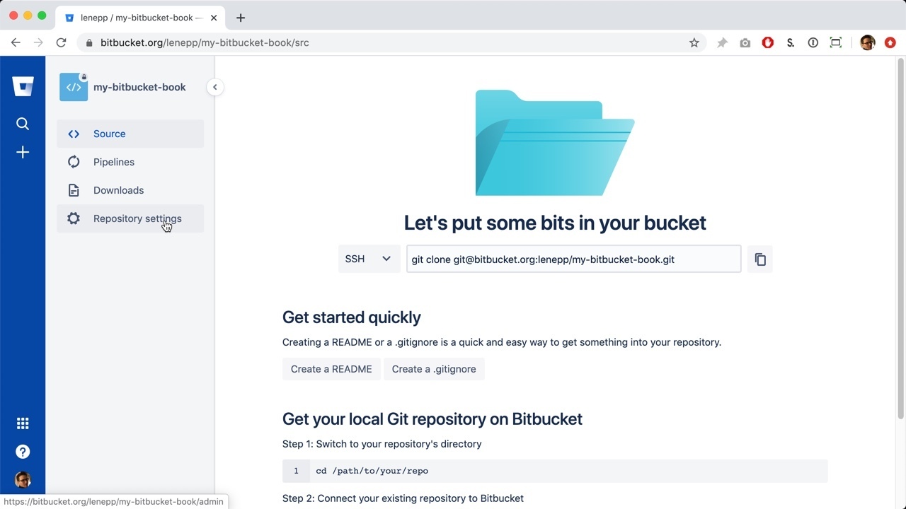 Go back to the Bitbucket page for your book’s Bitbucket repository.