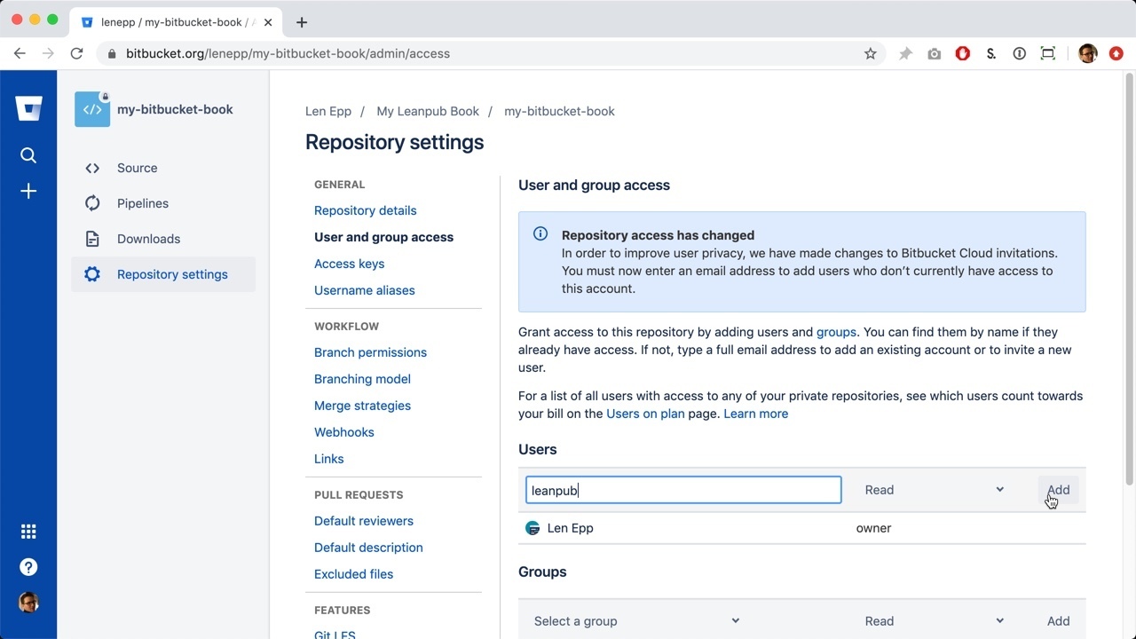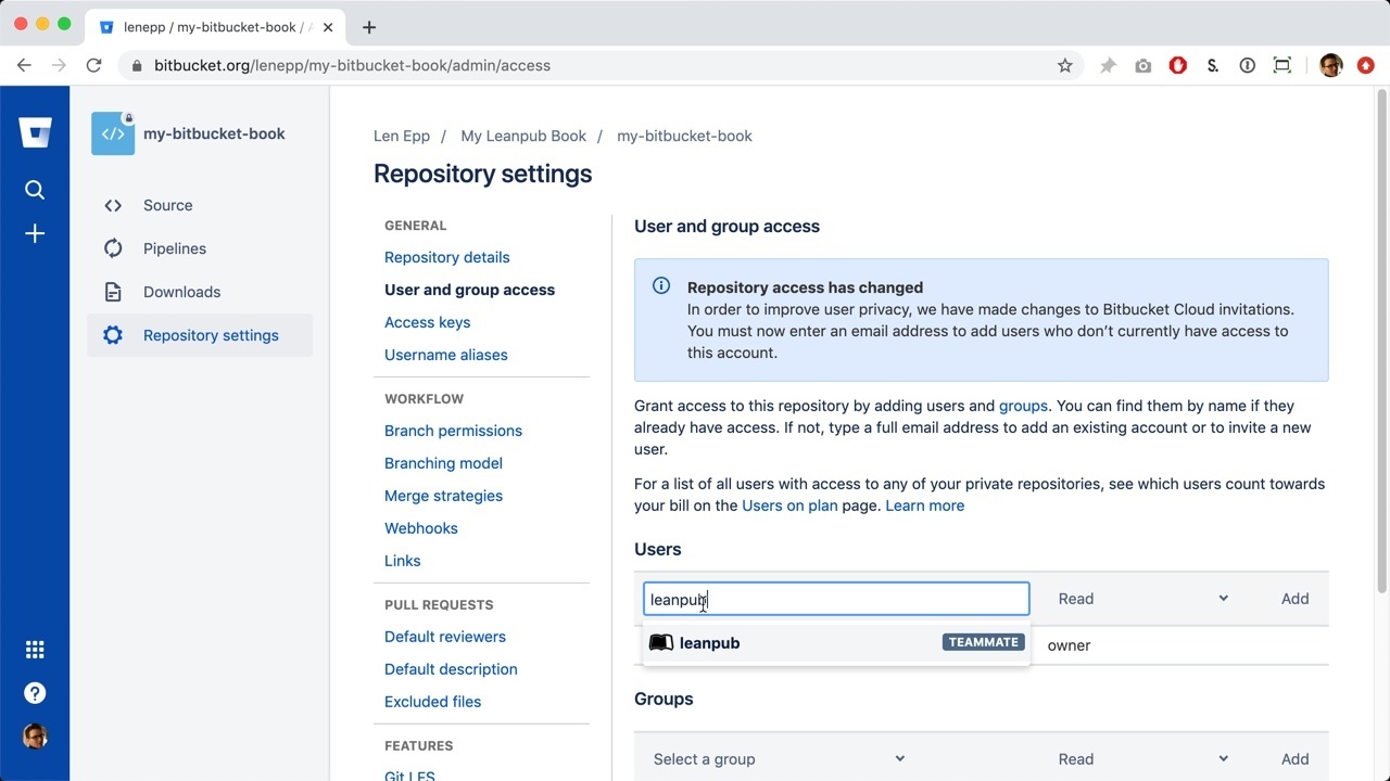 Adding Leanpub As A Collaborator on Your Book’s Bitbucket Repository