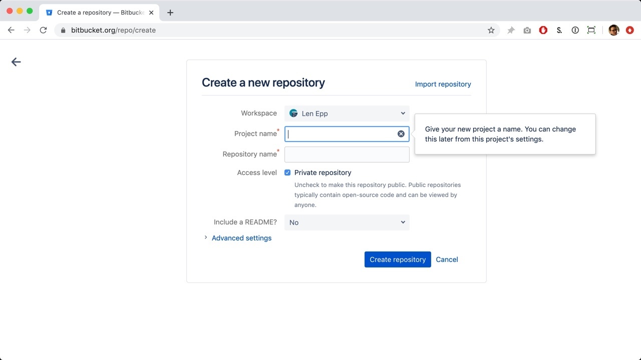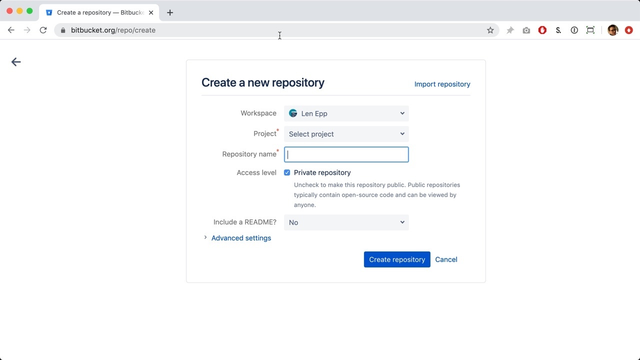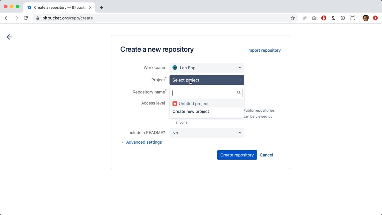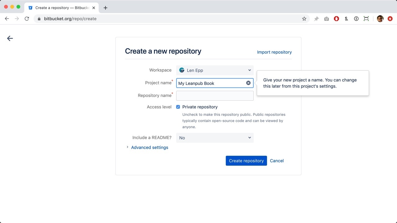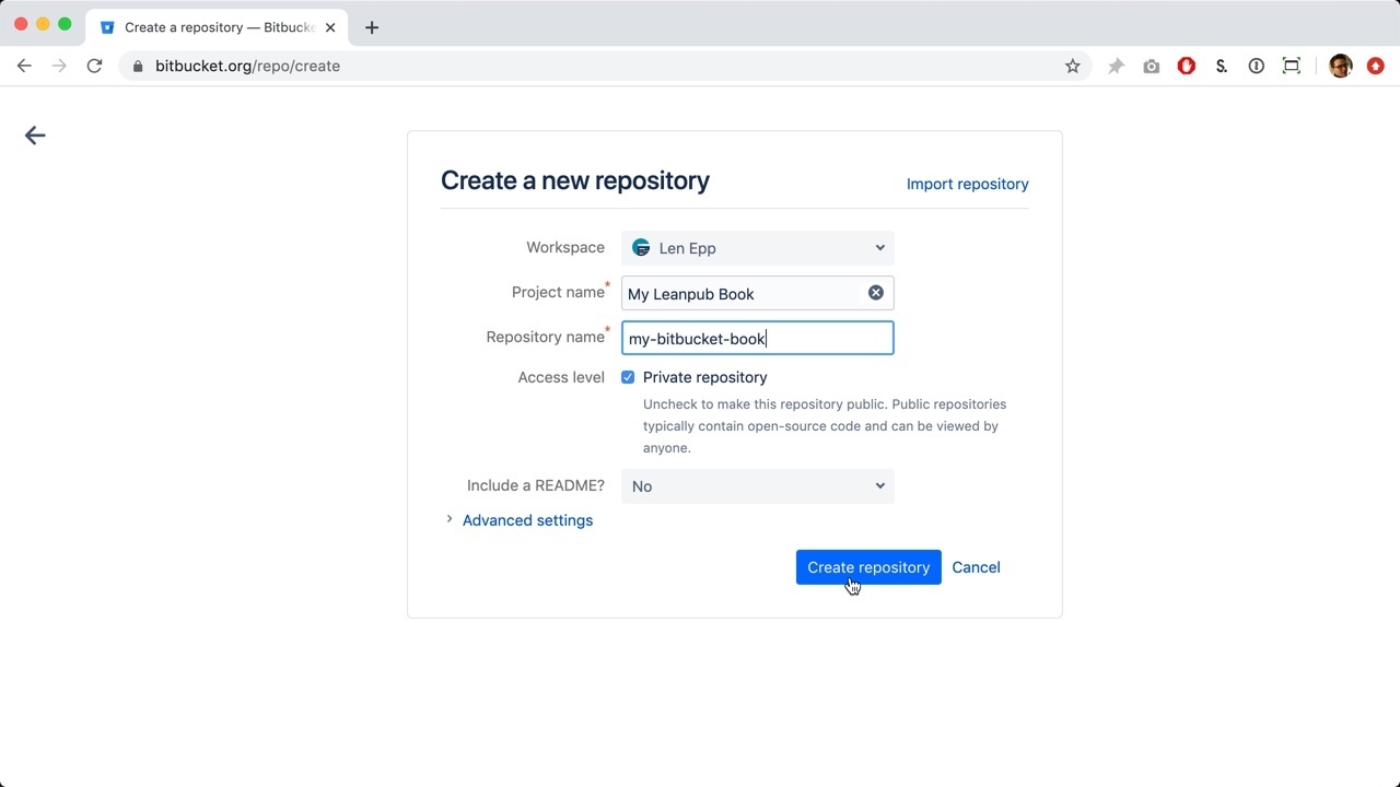 Finally, click the blue button to finish creating your new Bitbucket book.