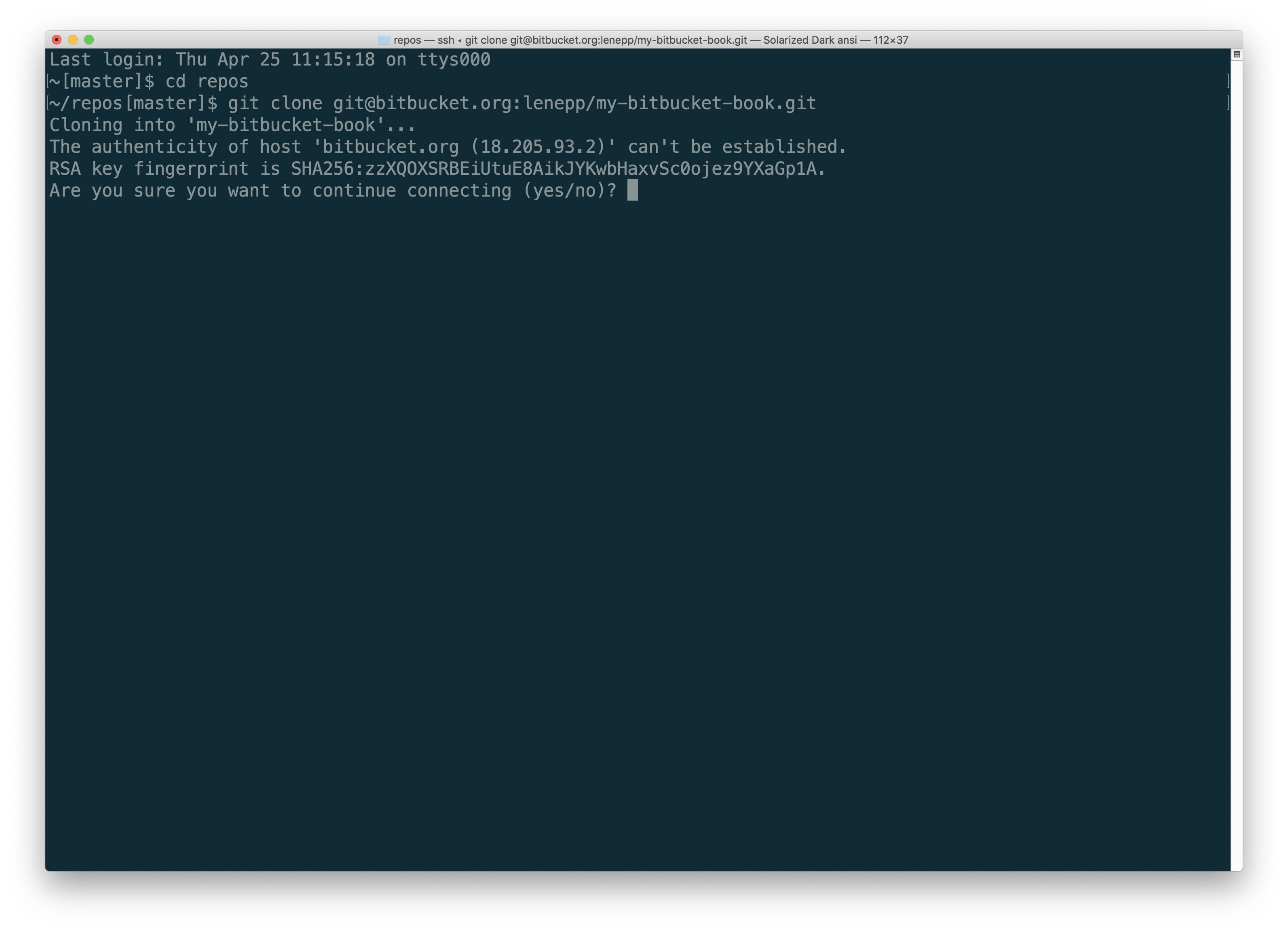 You may see a message asking if you are sure you want to connect. If you are sure, type “yes” and hit return.