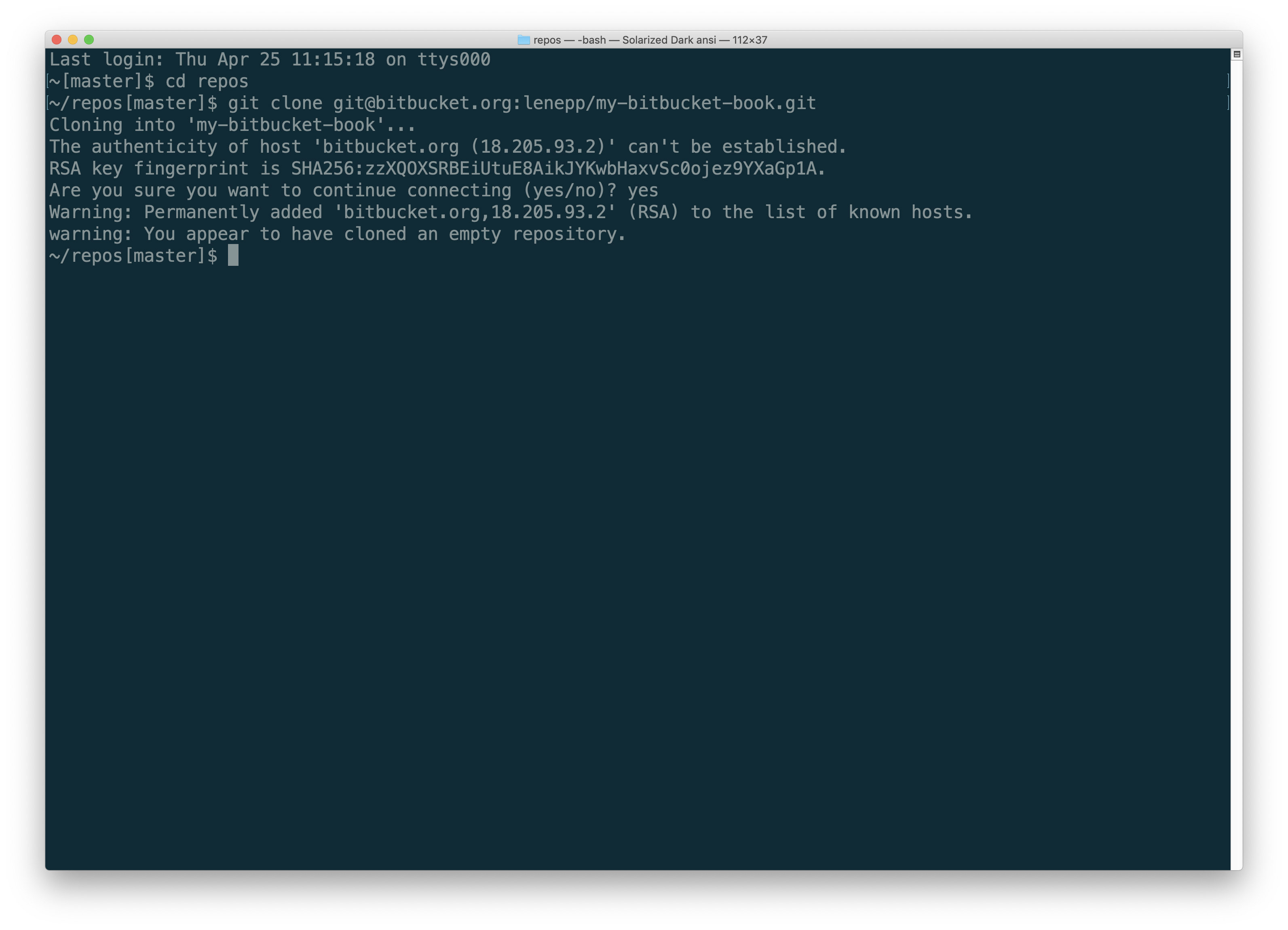 Paste in the repository information you copied on Bitbucket, and hit Enter.
