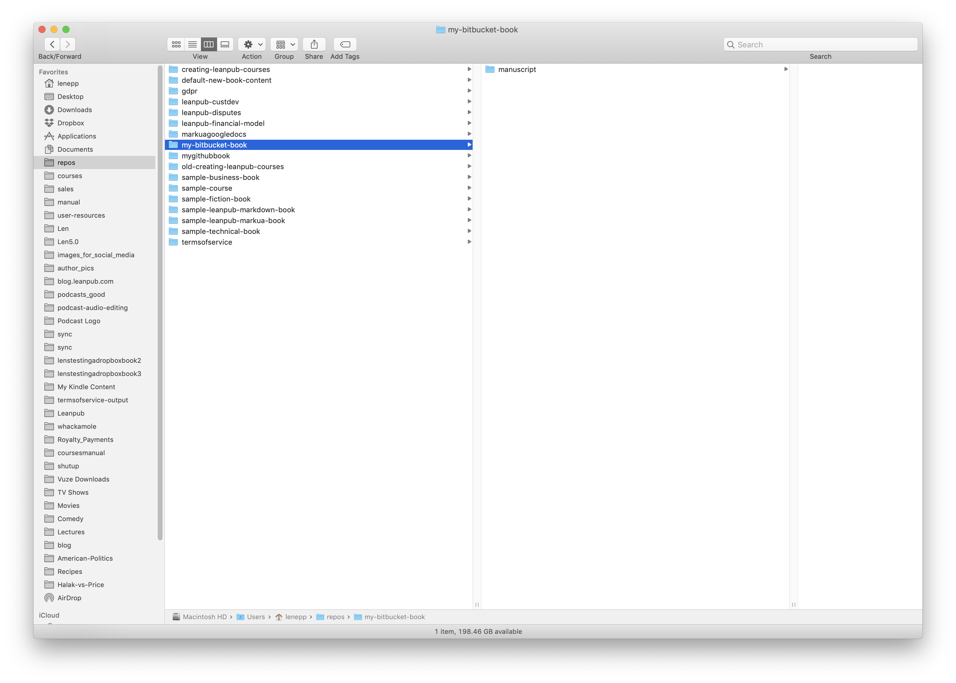 Open your book folder in Bitbucket. You’ll see a folder named manuscript inside it. This is where you write your book.
