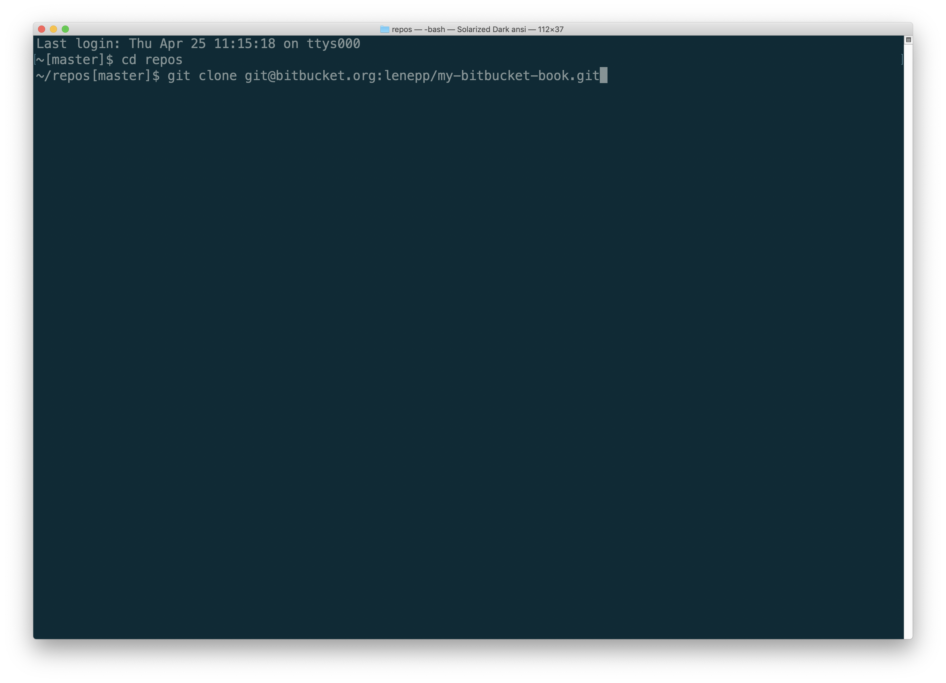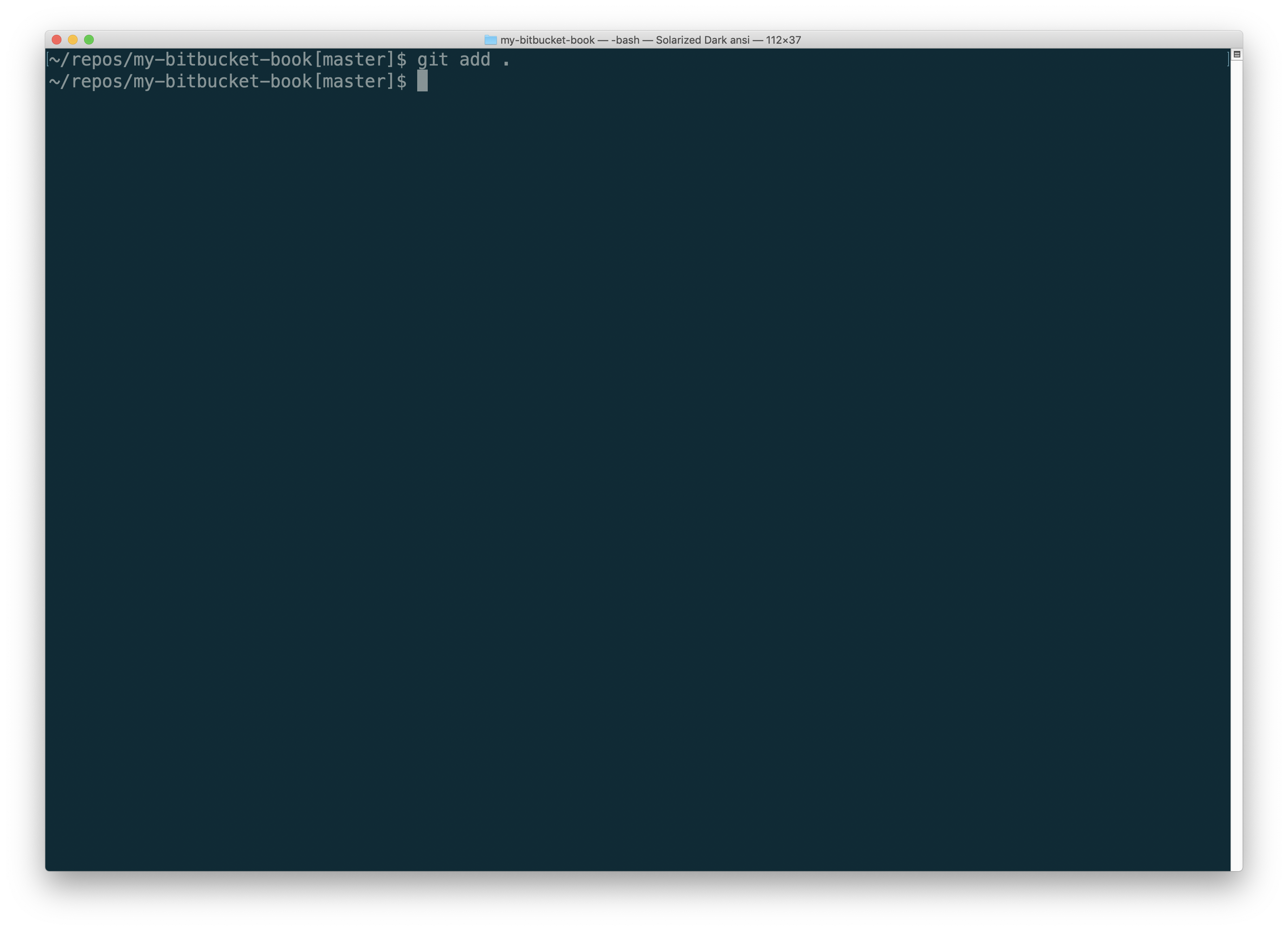 Go back to the command line on your computer and change to the Bitbucket repository for your book.