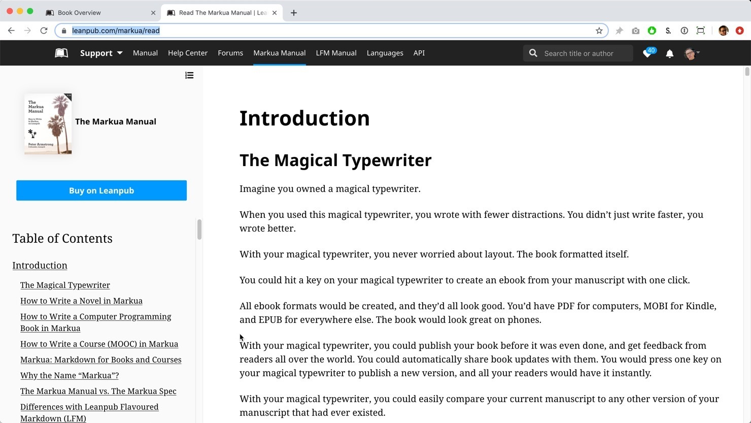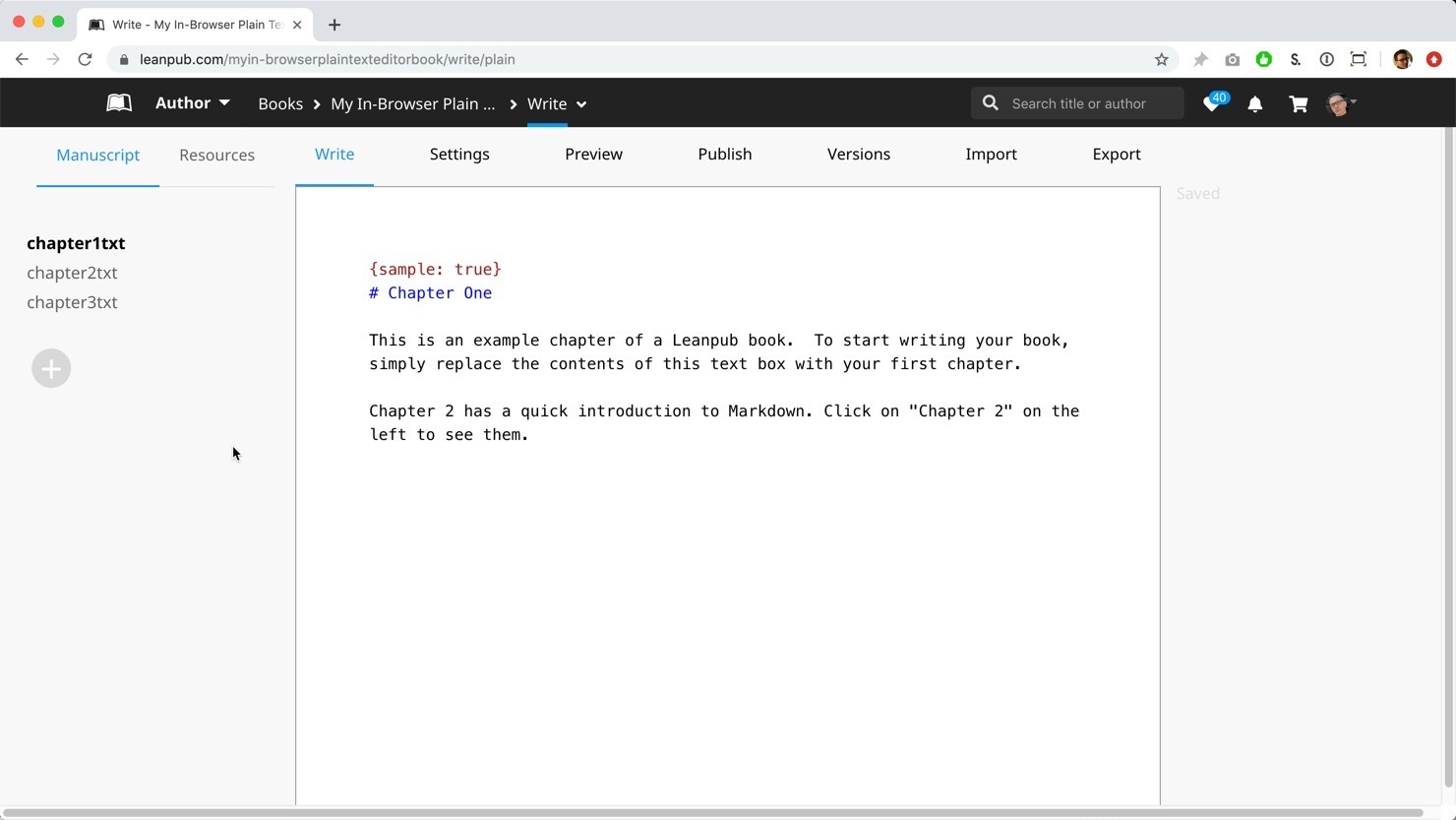 You can write a Leanpub book using the In-Browser Plain Text Editor writing mode. In this section we’ll show you how to create a book, how to write in the In-Browser Editor, and how generate your first preview.