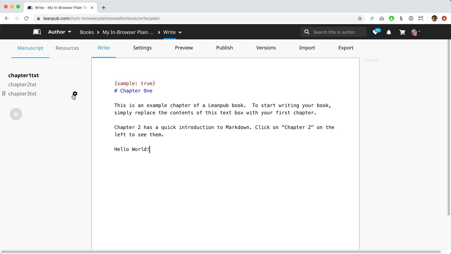 Next, go to Chapter One, and you’ll see Hello World! there now: