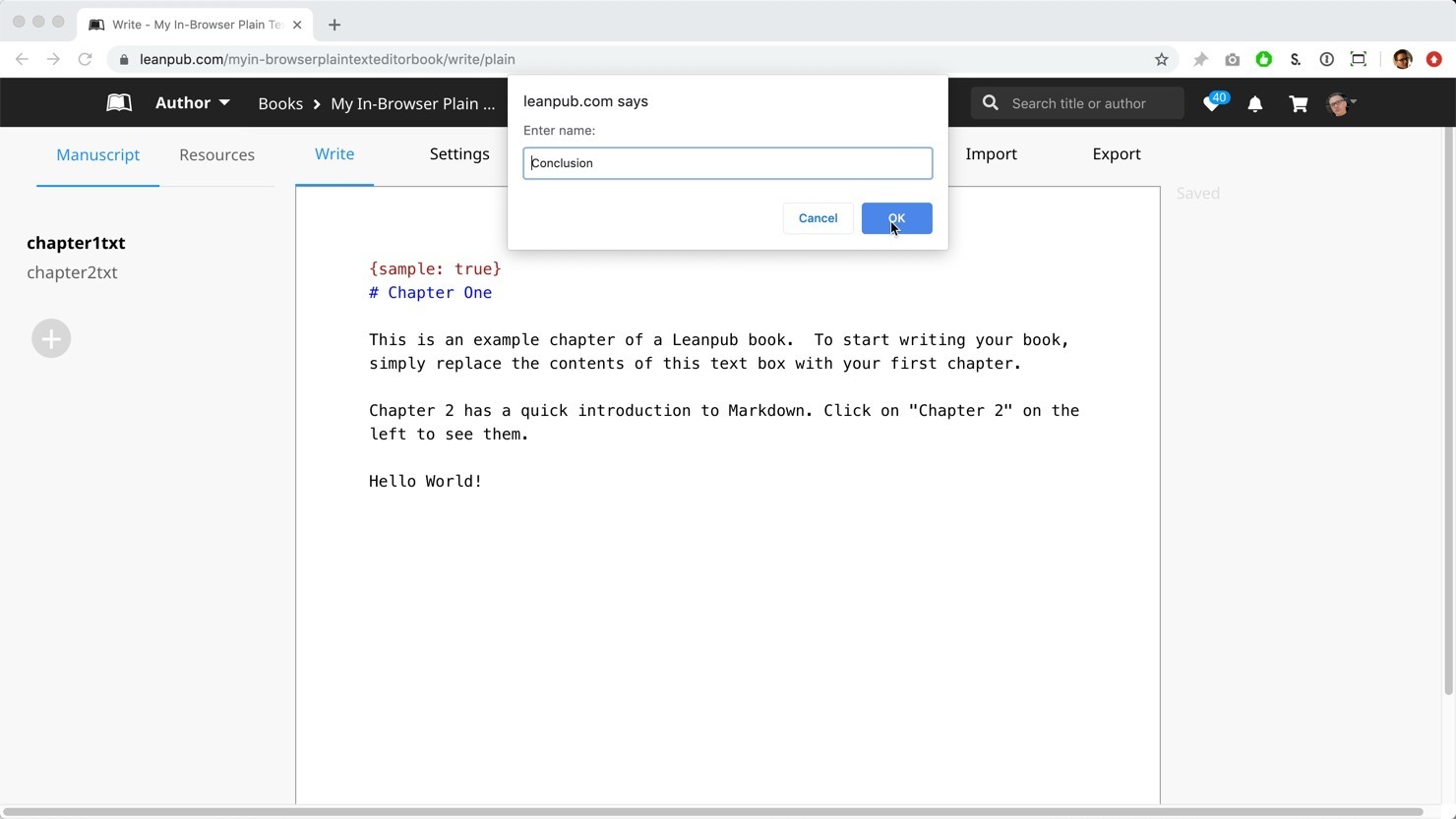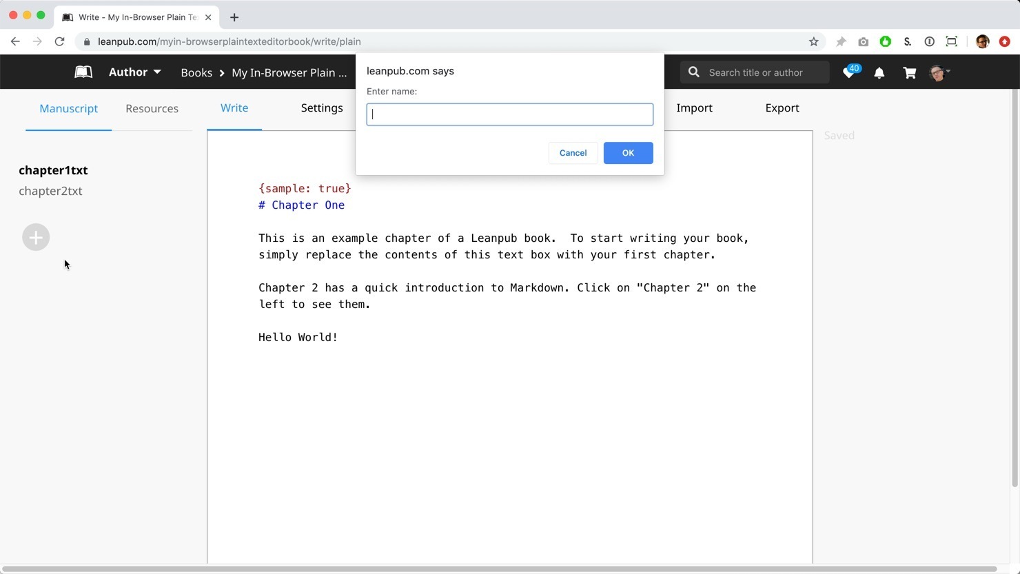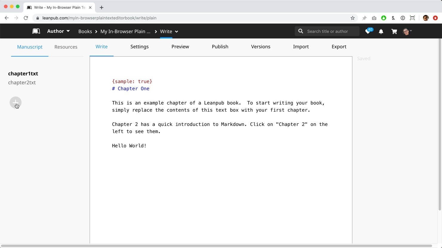 Creating a Book in In-Browser Plain Text Editor Writing Mode