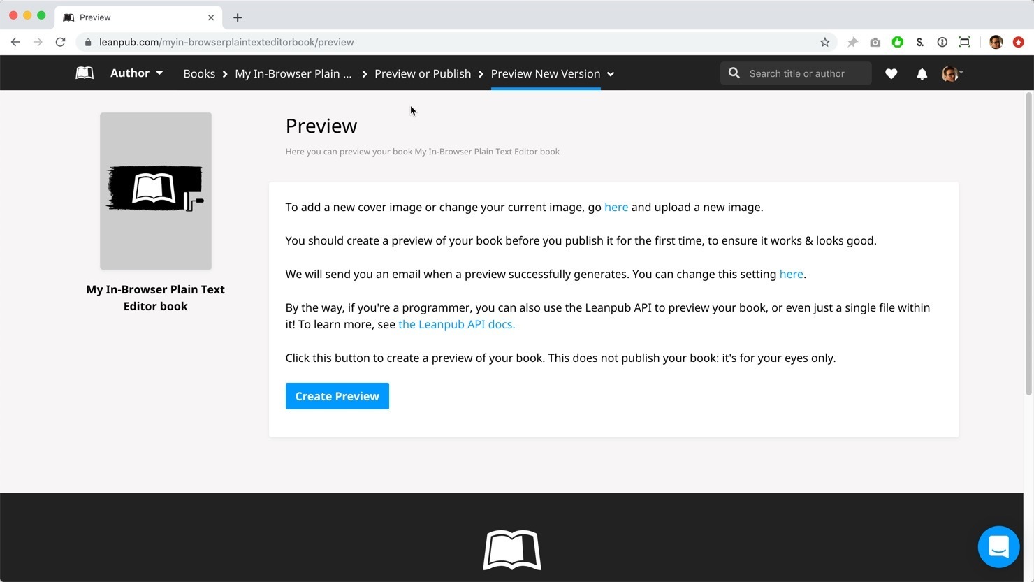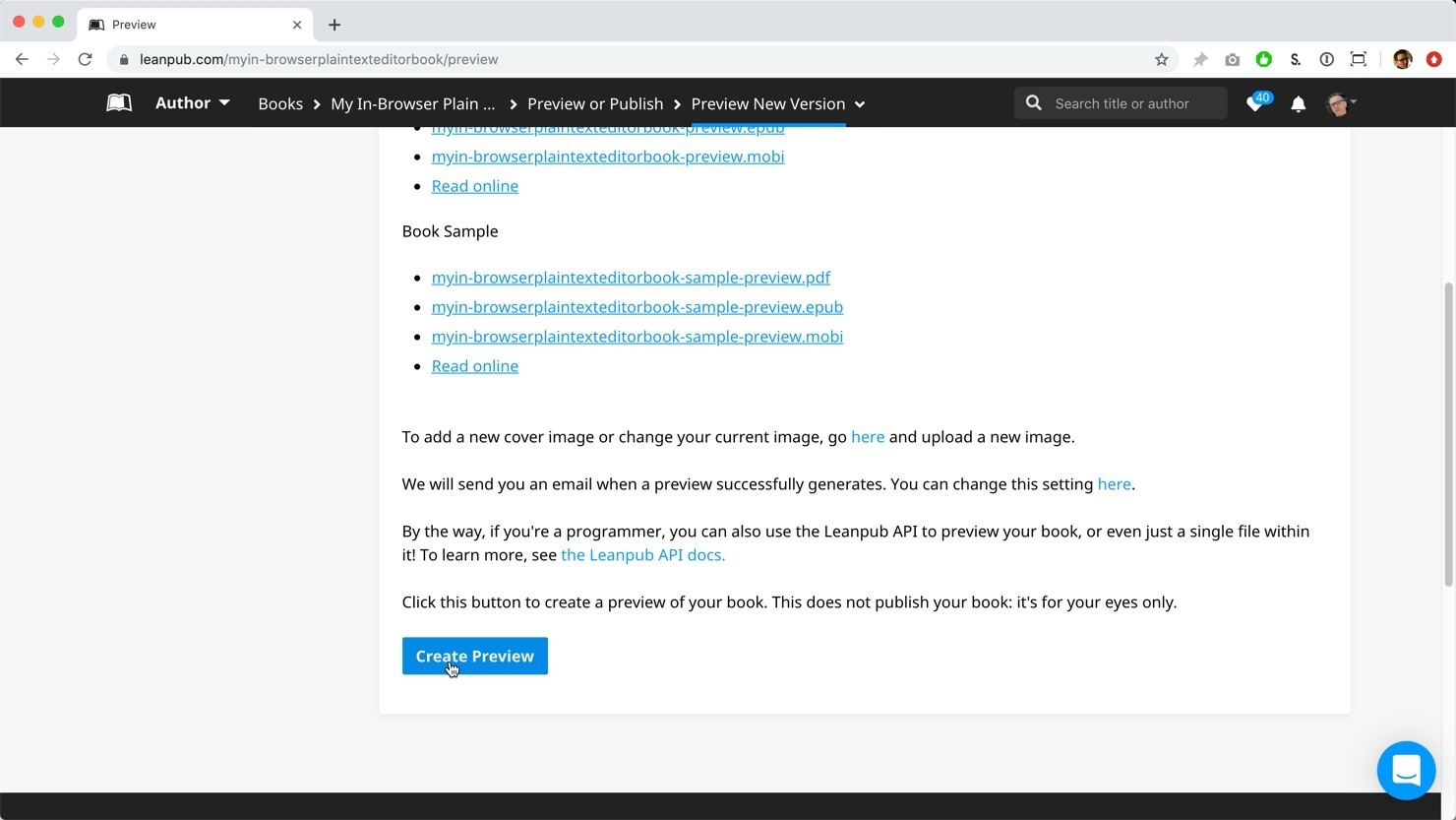Scroll down to see the blue Create Preview button, and click on it, to generate a new Preview of your book:
