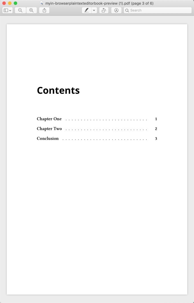 You will now see that there is a chapter called Conclusion in the table of contents: