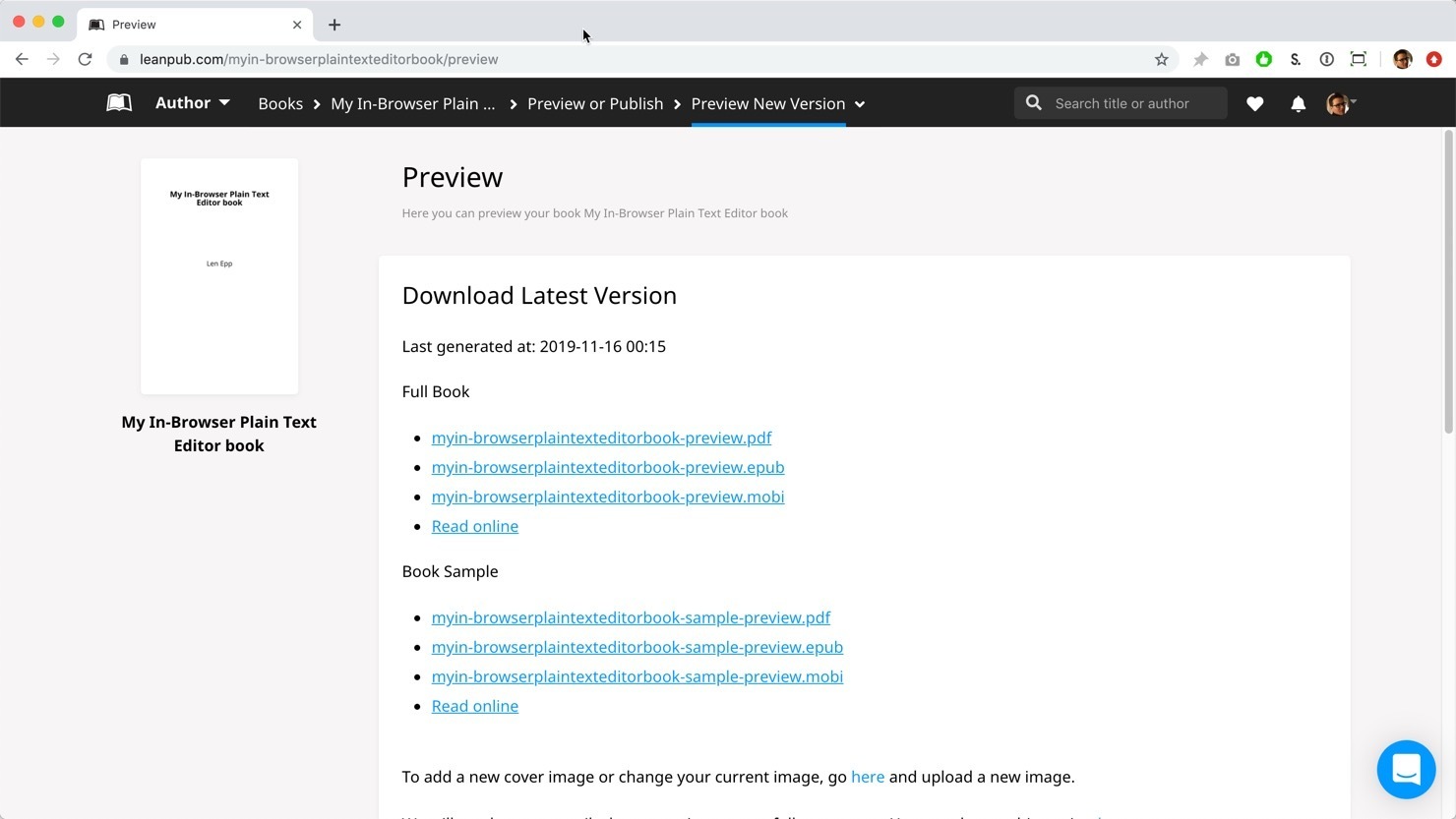 When the process is complete, the progress bar will turn green, and you’ll see the download links for your book: