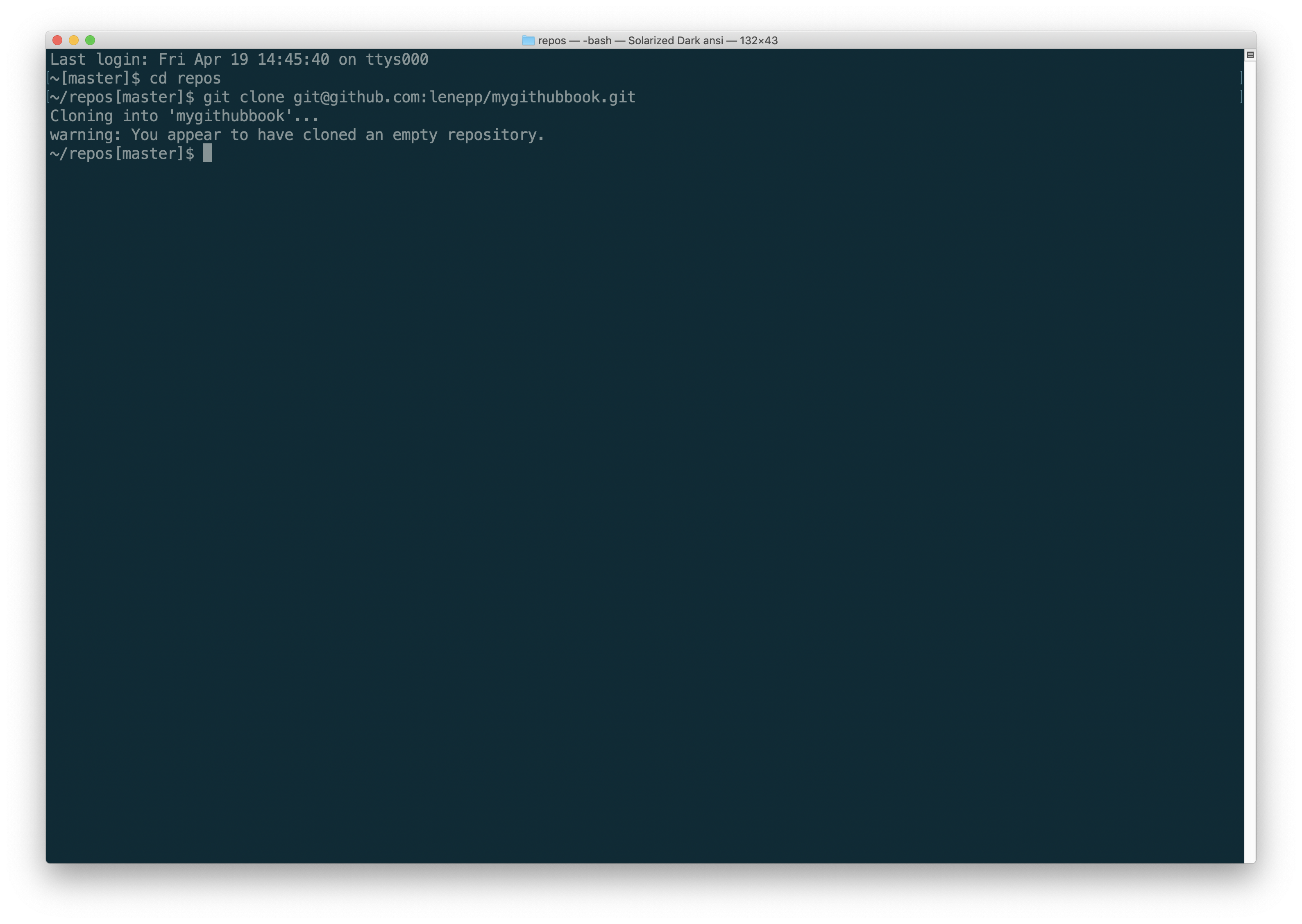 After a moment, you will see a message saying that the repository has been cloned.