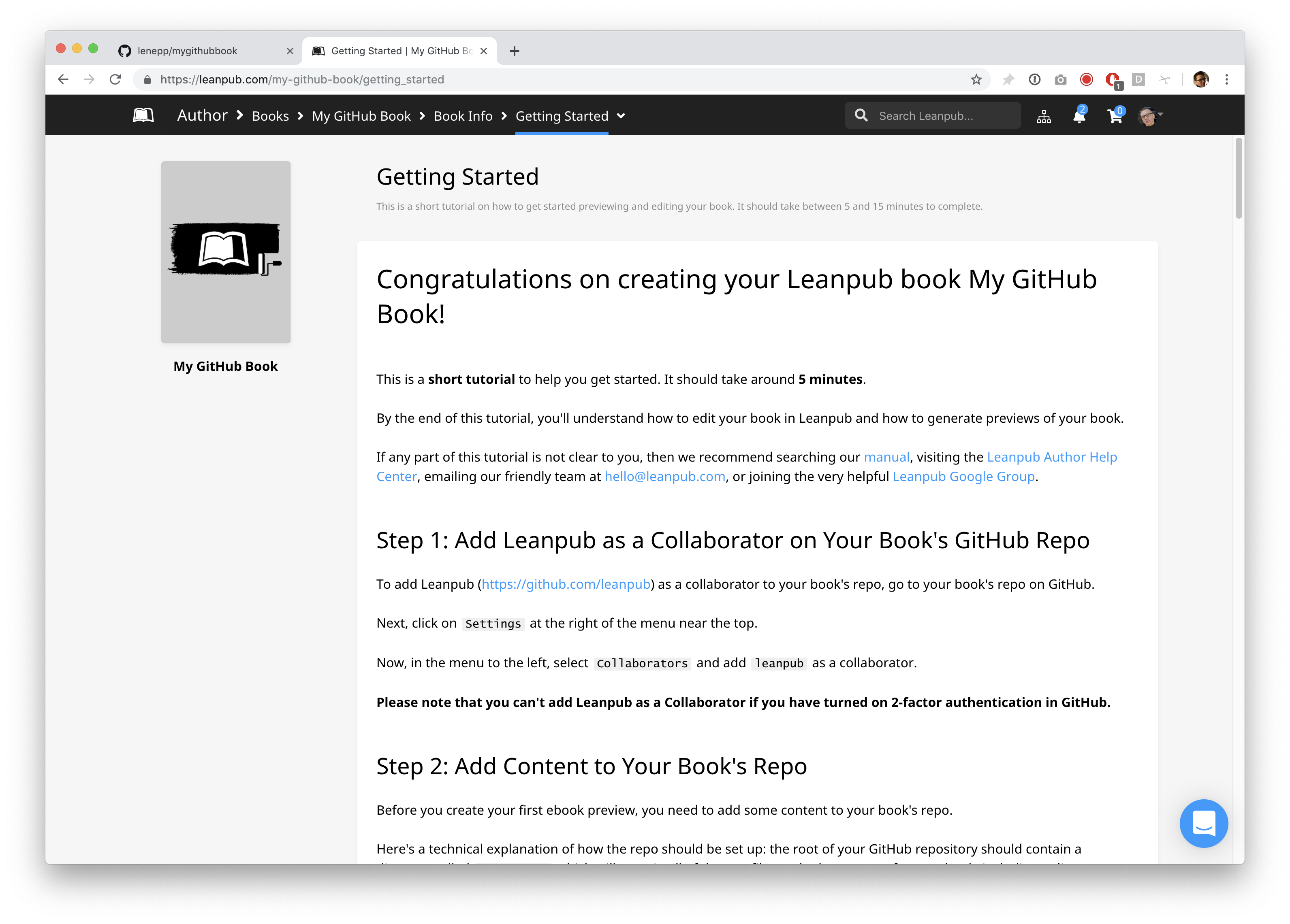 Congratulations! You’ve completed the Getting Started tutorial for writing a book in Leanpub using GitHub.