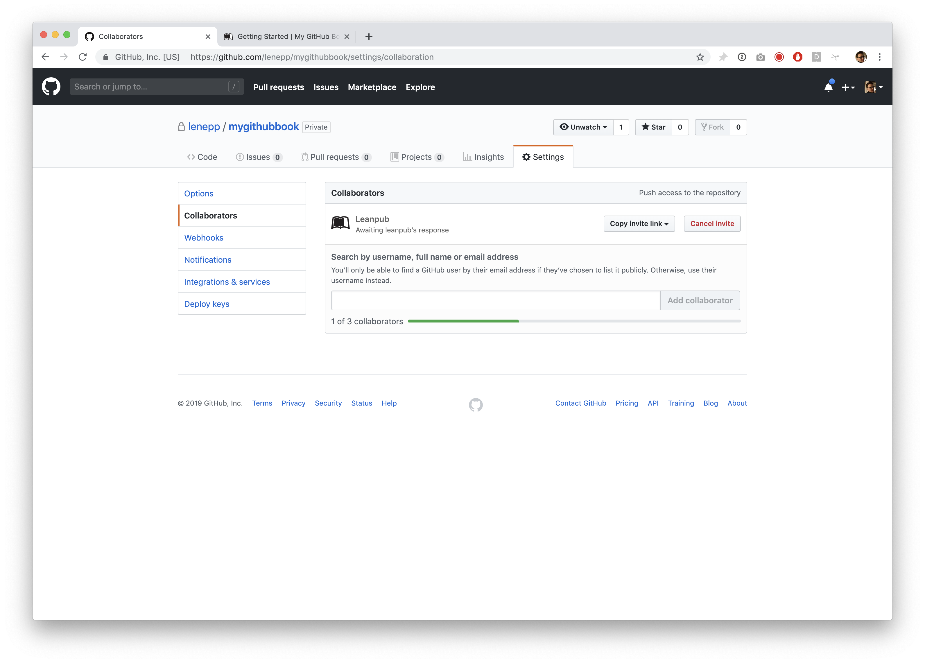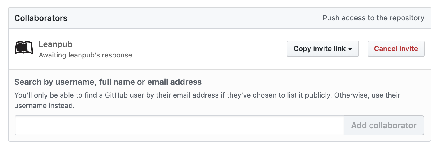 You will see that Leanpub has been added as a collaborator on the repository.