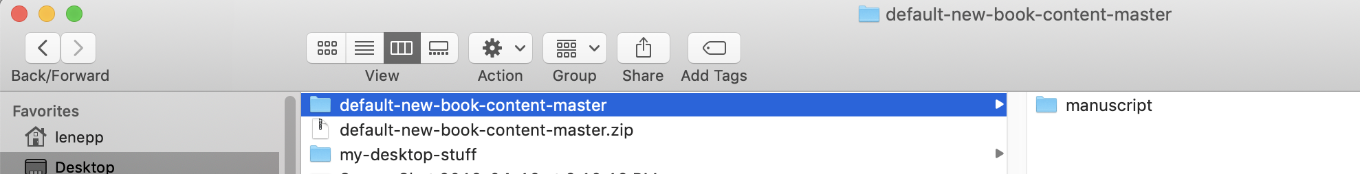 Open your book folder in Github. You’ll see a folder named manuscript inside it. This is where you write your book.