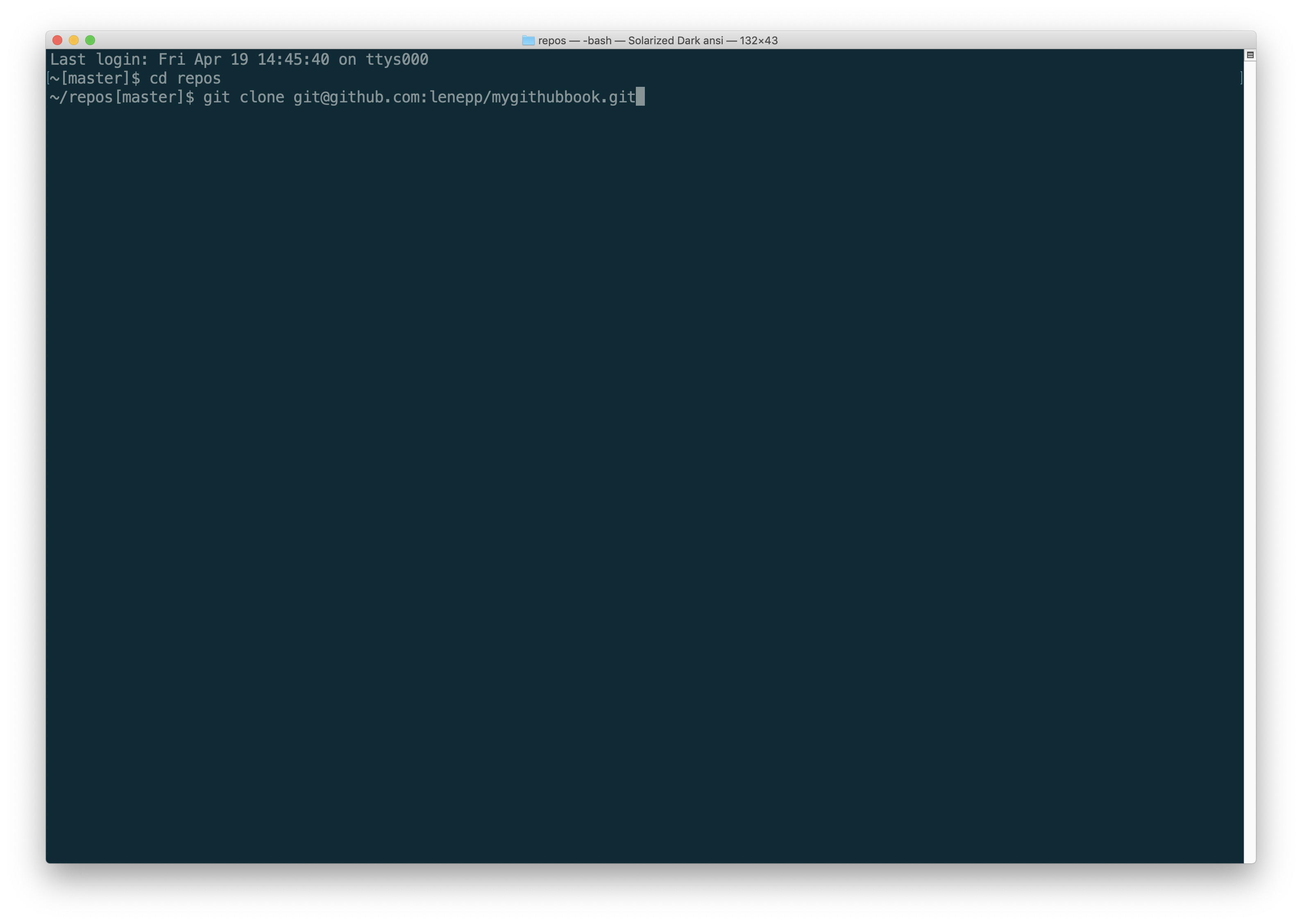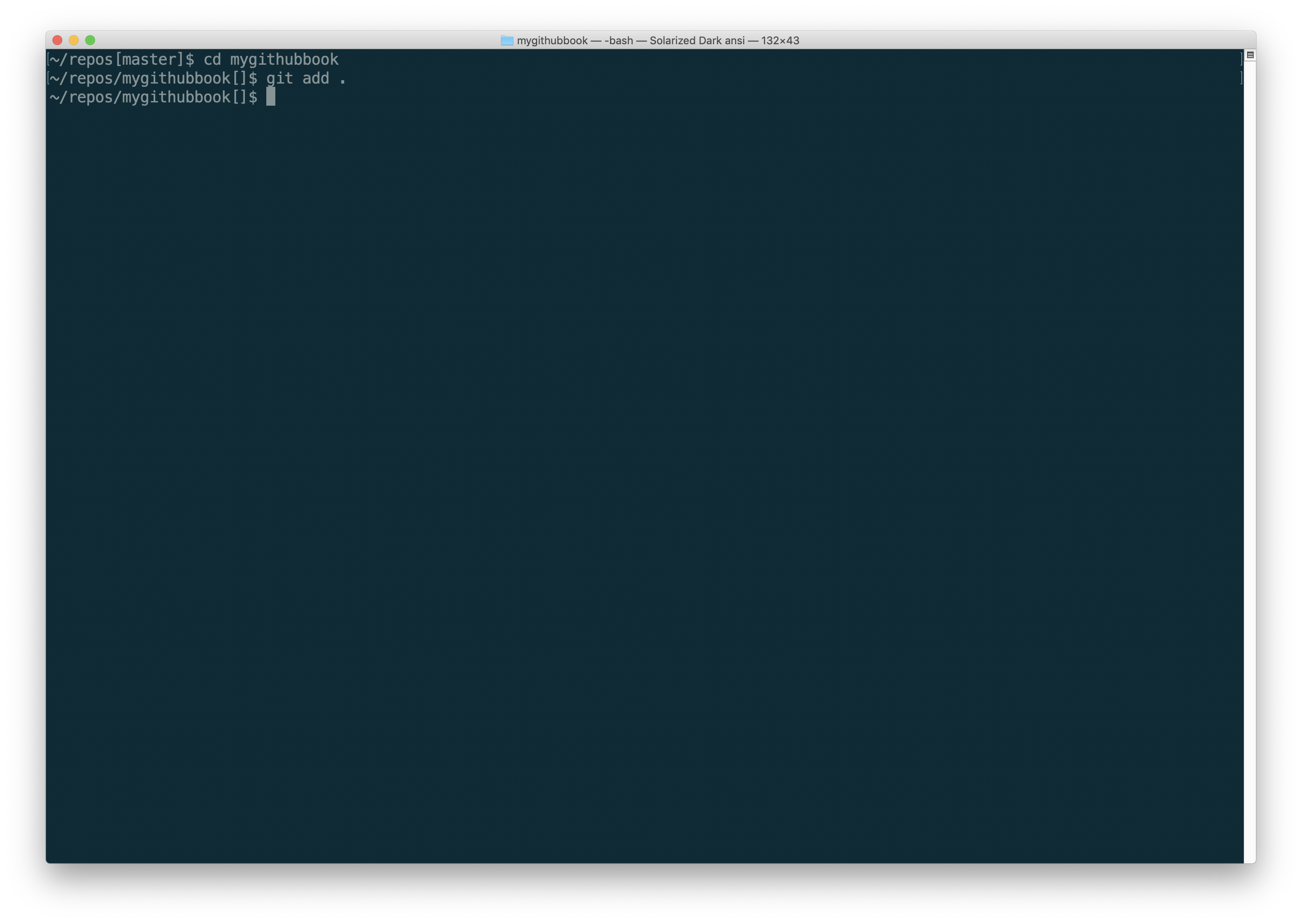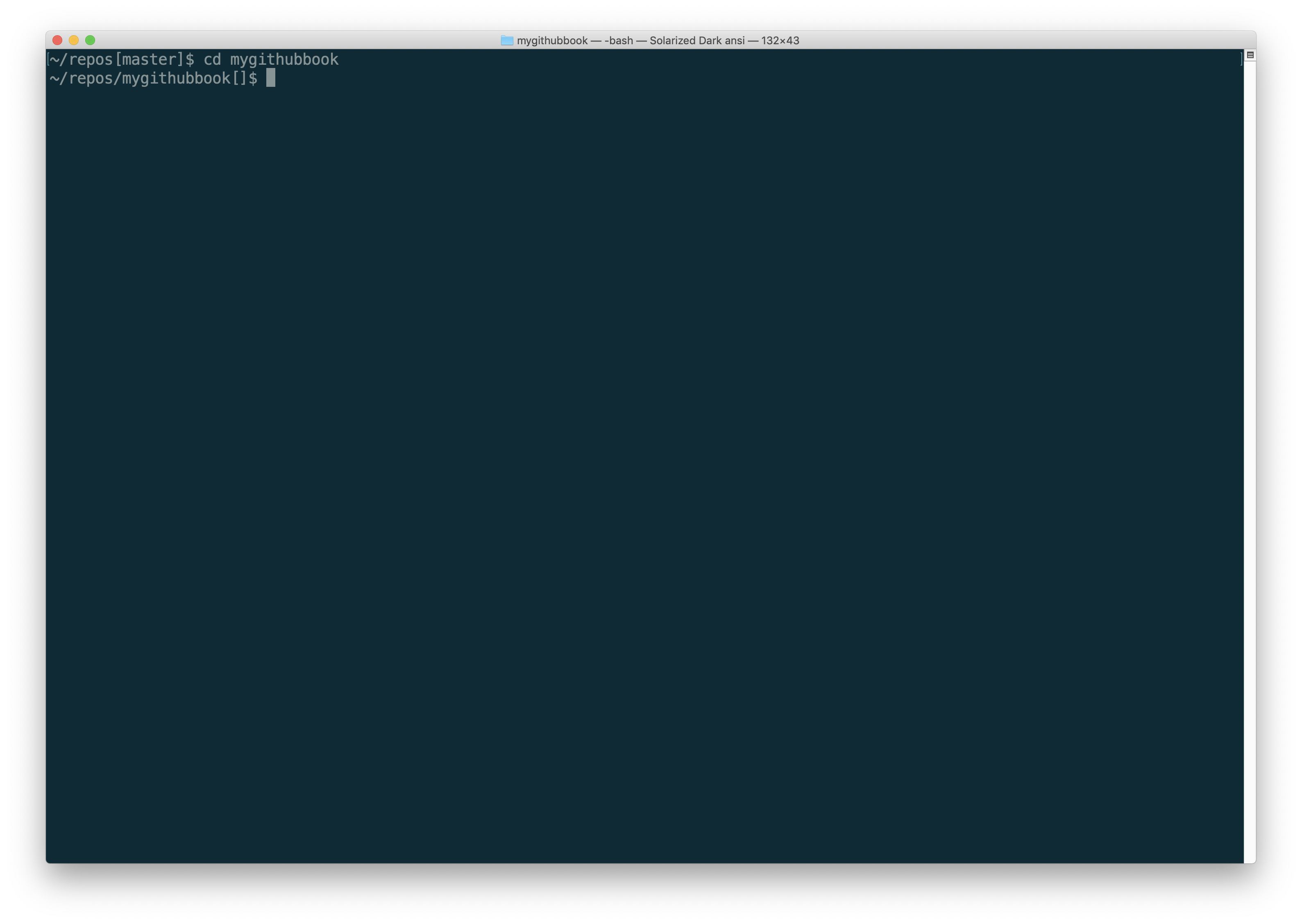 Go back to the command line on your computer and change to the GitHub repository for your book.
