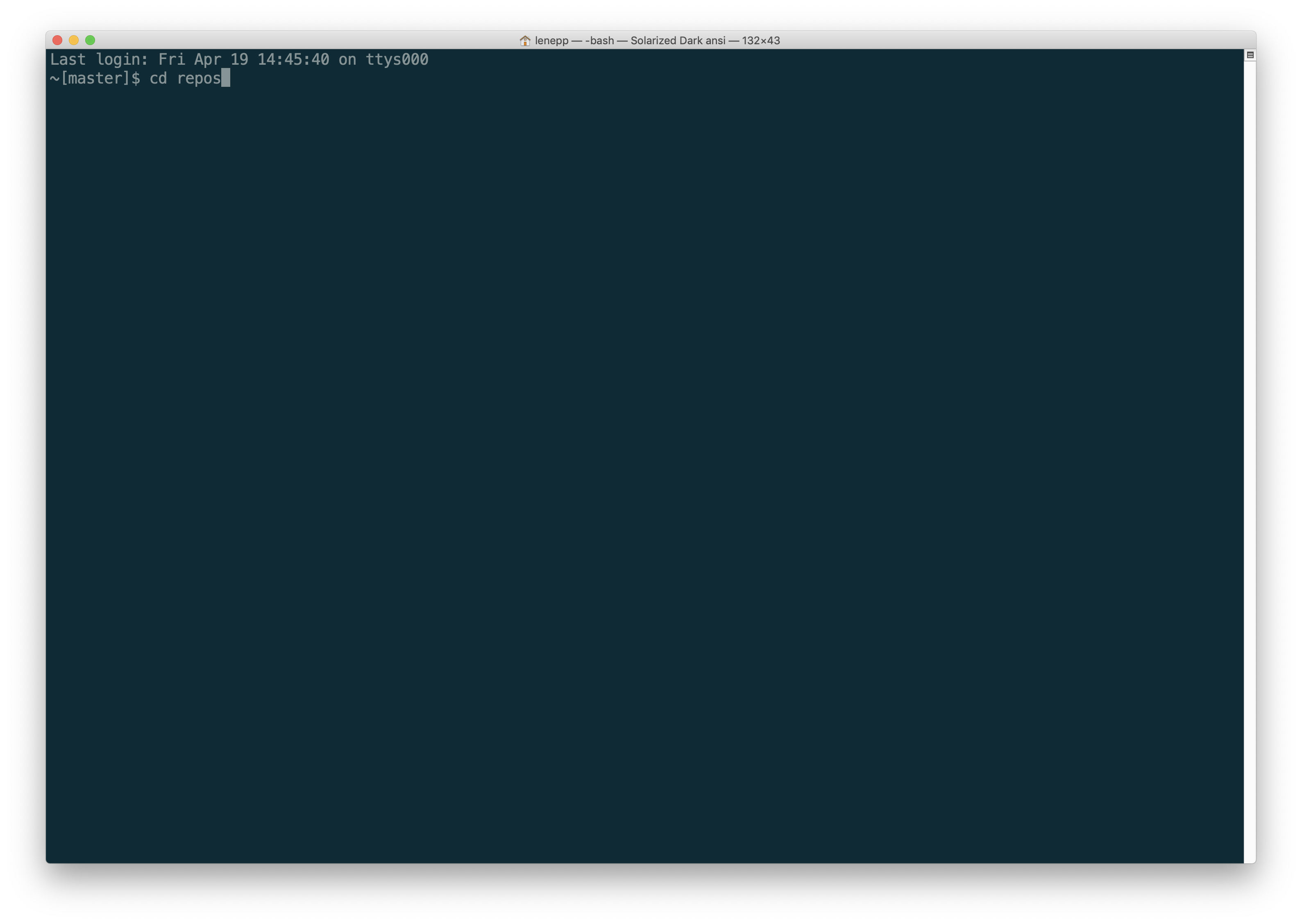 Go to the folder on your computer where you want to clone your GitHub repository. In this tutorial, that is a folder called repos.