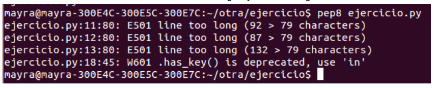 Donde mostrará las violaciónes al estándar de código Python de la siguiente manera: