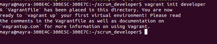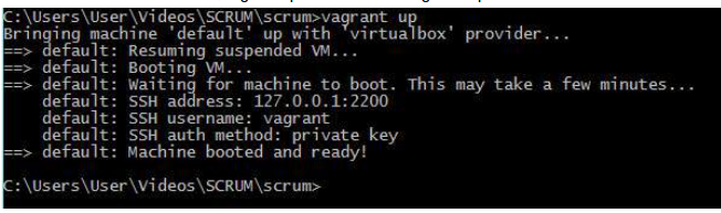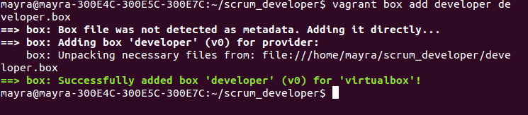 | Vagran reconozca que existe un archivo que define una máquina virtual | $vagrant box add nombre_de_la_maquinavirtual scrum_developer.box |