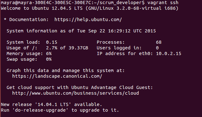 1 `vagrant ssh`