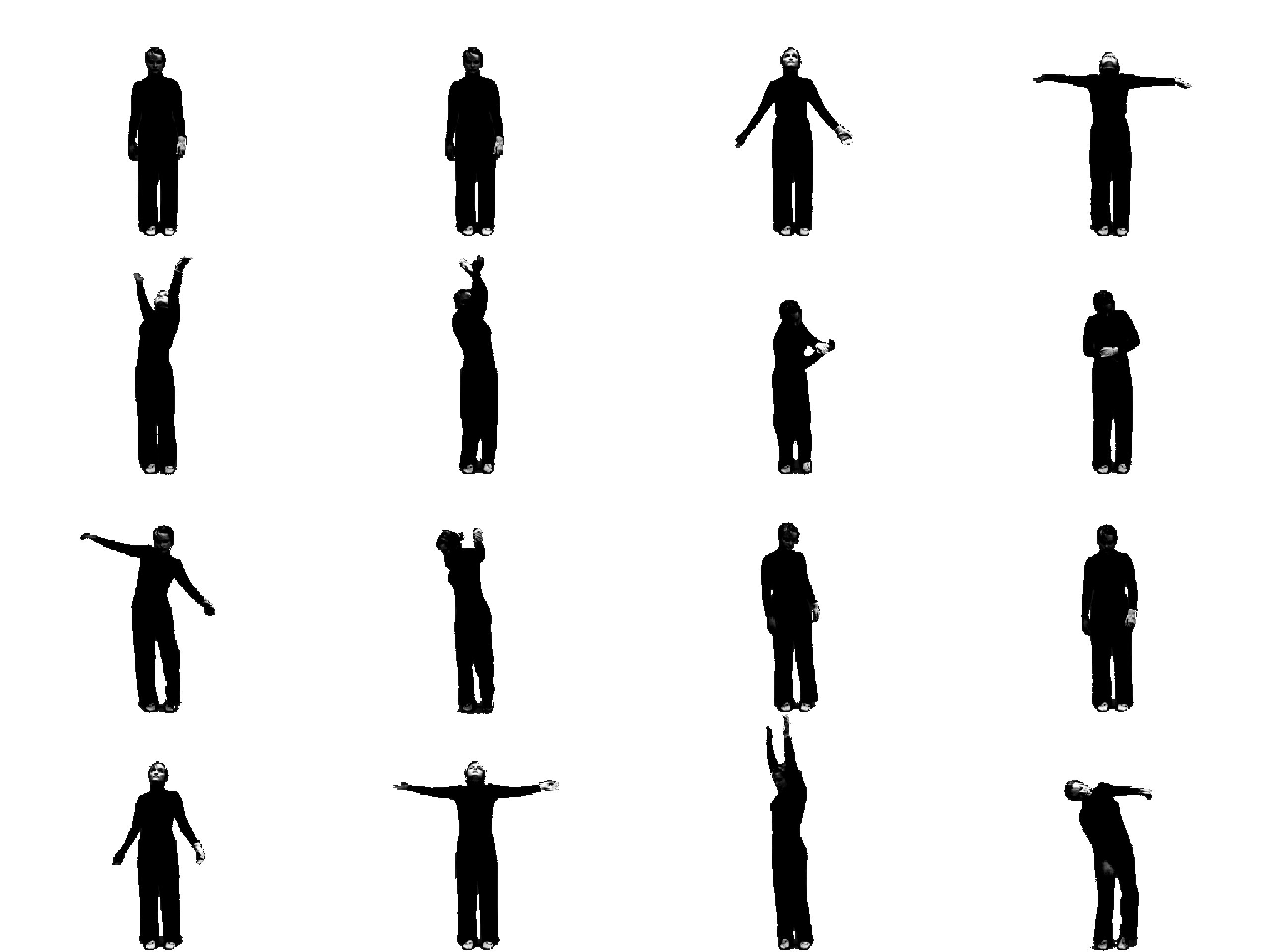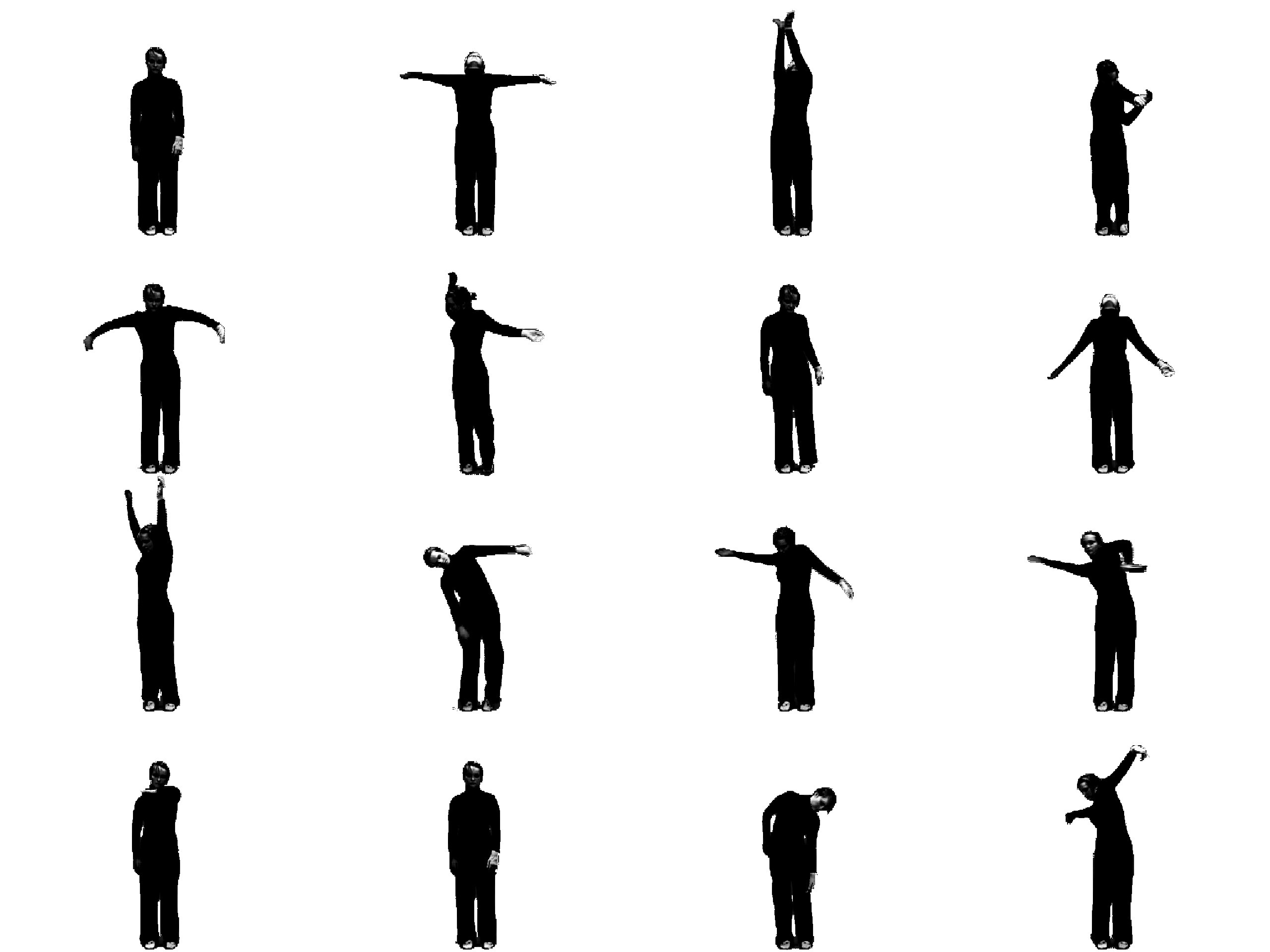 Et alternativ til slike tidsseriebilder er hendelsesseriebilder. Istedenfor å plukke ut bilder basert på tid, er et hendelsesseriebilde laget ved å trekke ut bilder basert på hvor stor endring det er mellom bildene (Teodosio og Bender 1993). Et eksempel på et hendelsesseriebilde av fridans til musikk, er vist i figur 17. I dette hendelsesseriebildet vises flere enkeltbilder fra den delen av sekvensen der det er stor forandring i bevegelsene, og færre enkeltbilder der det er lite forandring. Et slikt hendelsesseriebilde er på mange måter mer interessant enn et tidsseriebilde ettersom man ser mer av bevegelsesinnholdet i sekvensen. Et problem er imidlertid at man mister følelsen av tid når bildene ikke følger en bestemt tidskode. Vi ser altså de viktigste stillbildene, men klarer ikke å se for oss hvordan disse utfoldet seg i tiden.