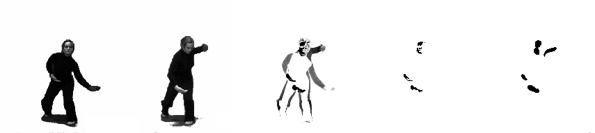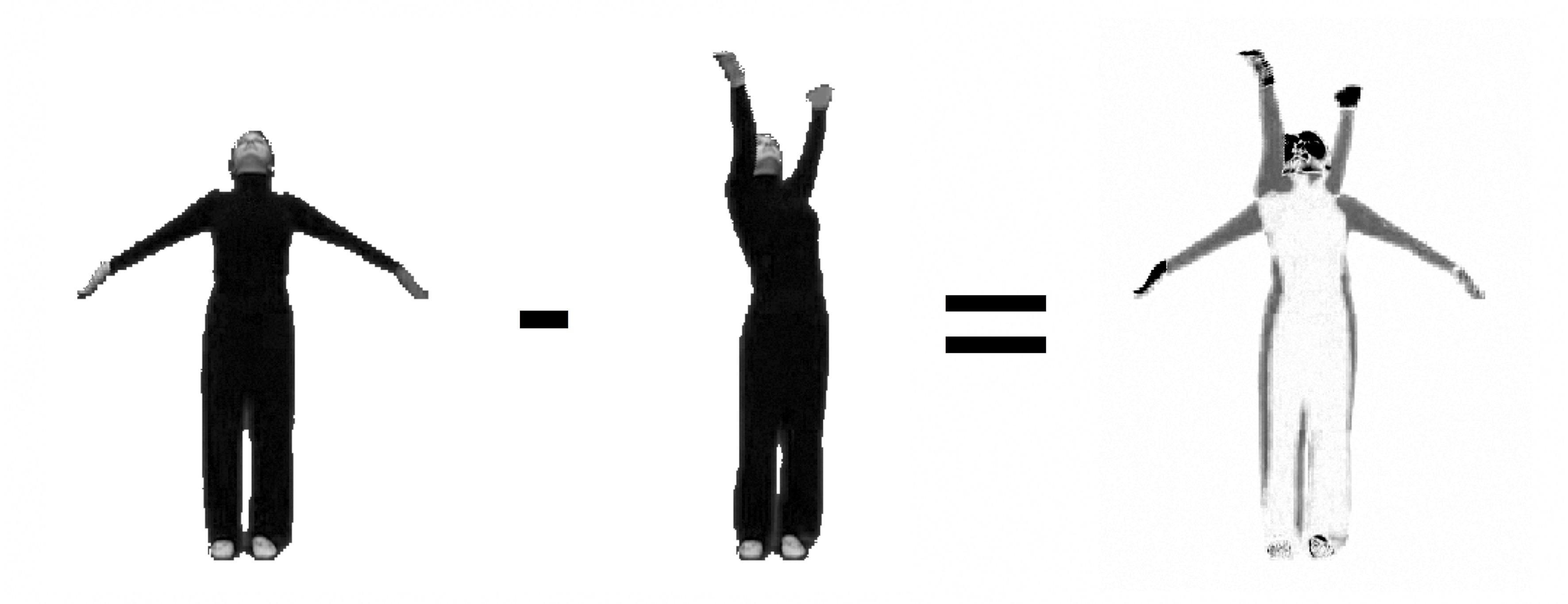 En metode for å vise bevegelser i et videomateriale er å lage en video med bevegelsesbilder. Ettersom en video er bygget opp av enkeltbilder, som igjen består av tallmatriser, er det mulig å gjøre forskjellige matematiske operasjoner på disse bildene. Et bevegelsesbilde er laget ved å subtrahere ett bilde fra det foregående bildet. Da ender man opp med et bilde der bare de pikslene som er forskjellige mellom de to subtraherte bildene, synes. Et eksempel på et slikt bevegelsesbilde kan ses i figur 18.