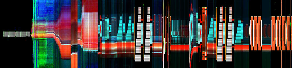 Figur 32 viser bevegelseskurver laget fra konsert-DVD-en Minimum–Maximum av Kraftwerk (2005). Her kan man tydelig se hvordan de forskjellige bildeklippene er lagt ut i et strukturert mønster som følger det musikalske innholdet. Det er dermed mulig å bruke bevegelseskurvene som utgangspunkt for å analysere form og struktur i lyd og bilde.