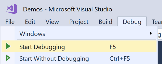 Now I click the OK button of the New ASP.NET Core Web Application dialog and that’s it for now; my application is ready. In order to run it inside my browser, I’ll select Debug / Start Debugging from the menu, or use the F5 shortcut: