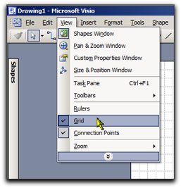 Some people prefer to have the grid on the screen so that they can align the shapes. It is preferable to use the automatic alignment tools in Visio which is covered in a later section.