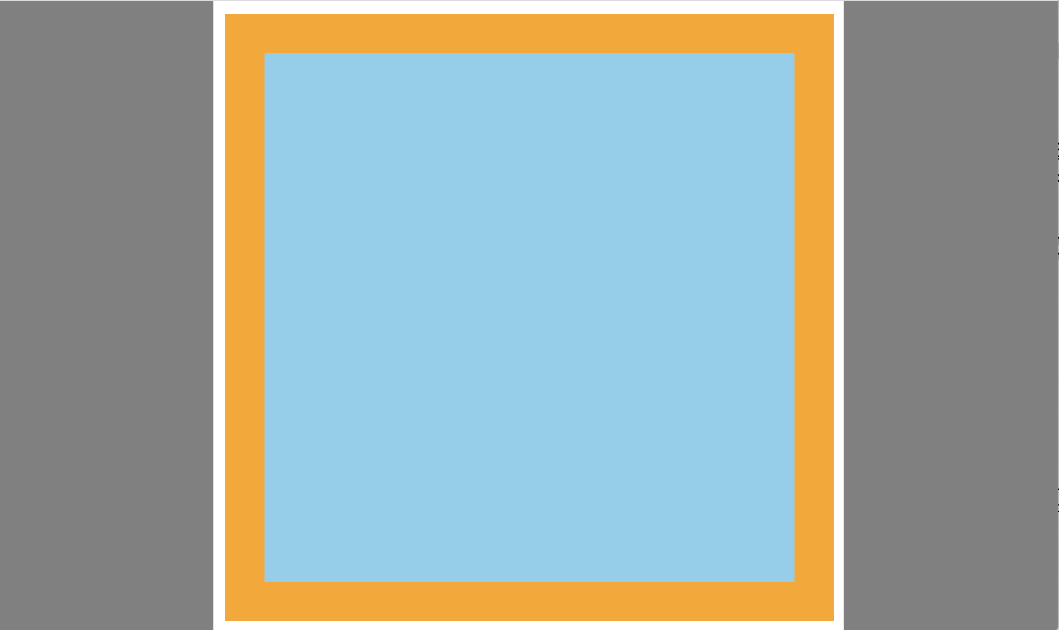 Let’s go through the elements of this box in order. This script fragment creates a sky blue box with a grey background (i.e., unused areas outside the square box). Throughout the experiment, text will automatically appear in red font that is 100% as big as the standard font size (i.e., is the standard size). There is a 40-pixel-wide orange border. Finally, the box has a 2% margin inside which everything is set, to prevent things from “touching” the edge of the box. Having both a margin and a border can provide a nice aesthetic (as demonstrated in the grey box shown next), but if you only wish to have one, you may fill in “0” for the other.