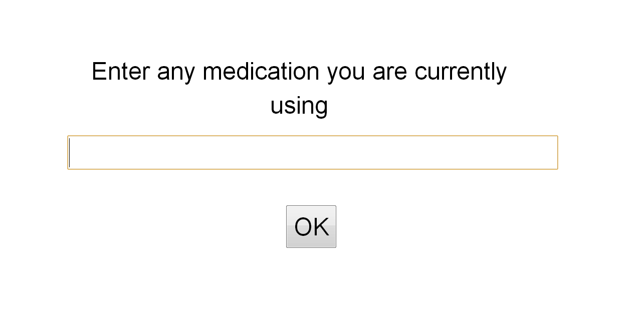 input("Enter any medication you are currently using","medication");