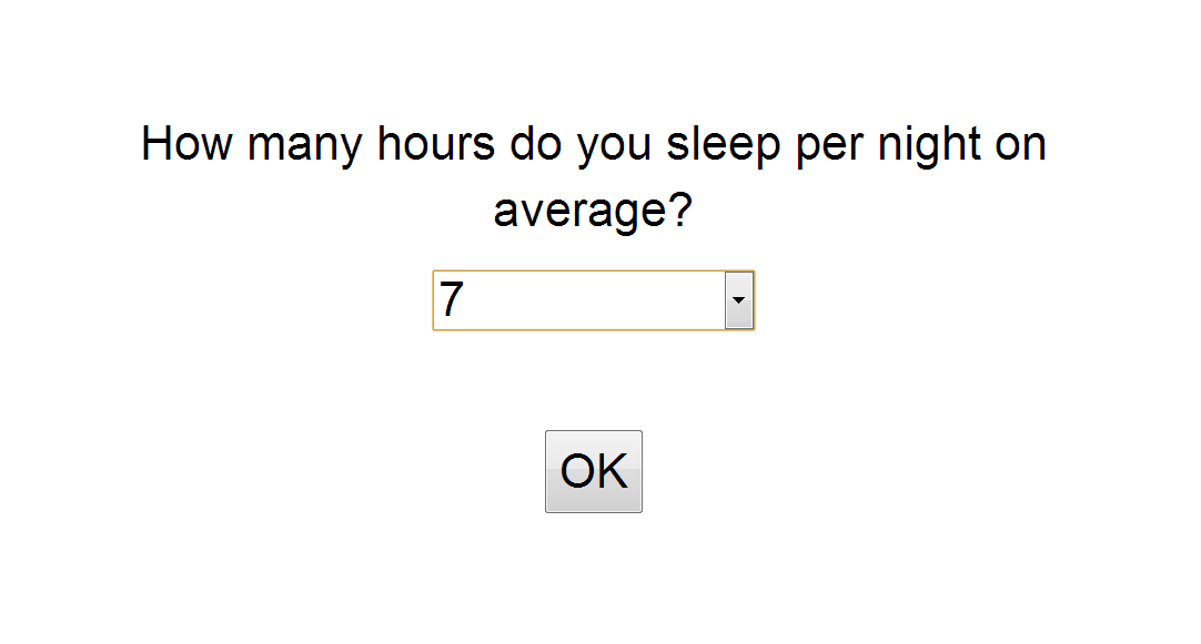 select("How many hours do you sleep per night on average?",