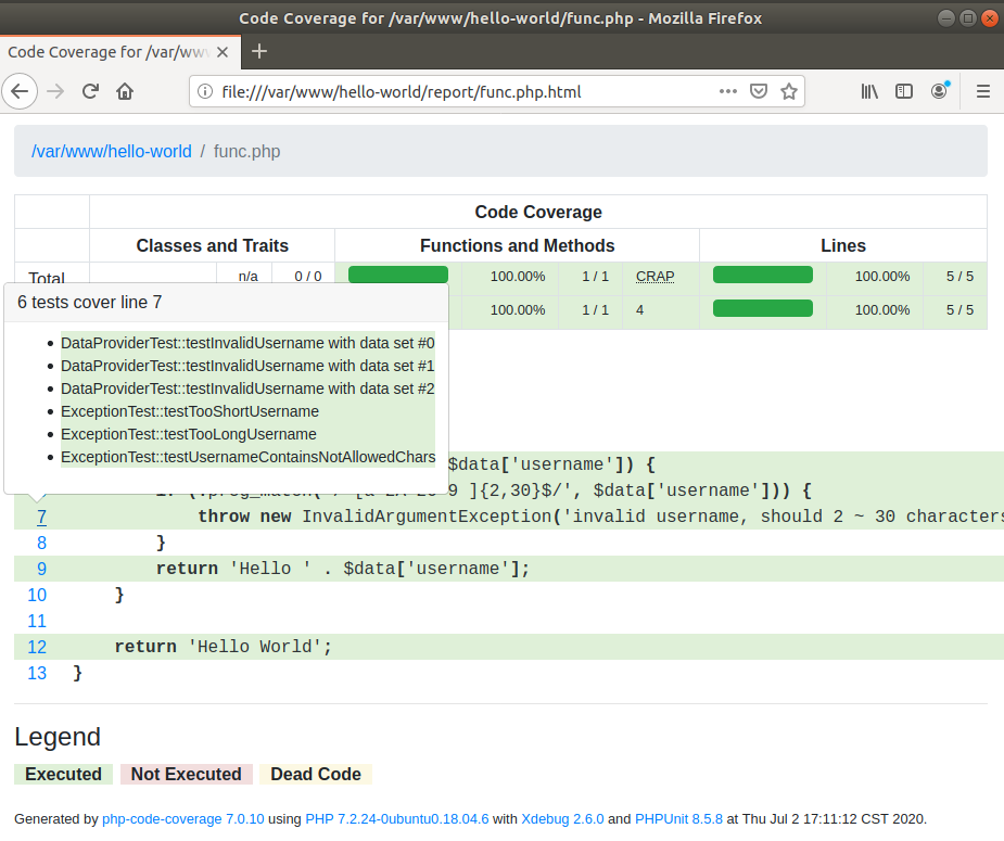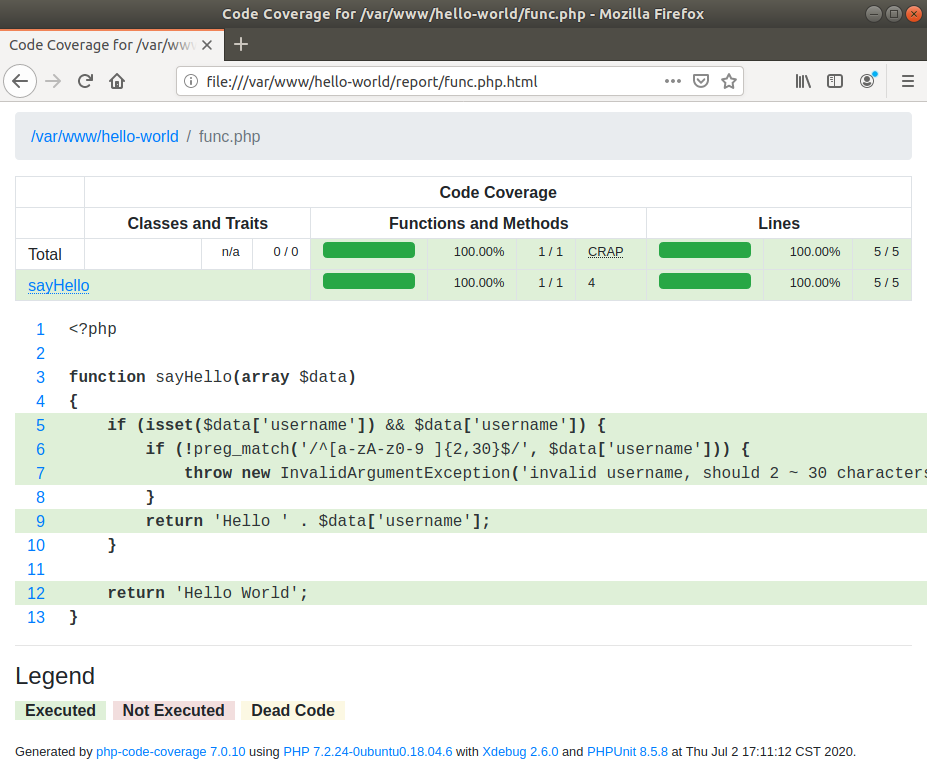 PHPUnit 也提供了几种方法让一段代码不包含在覆盖率统计范围内,所以开发者想要达到高覆盖率是很容易的。那些妄图在覆盖率上打开发者主意的,就省省吧。