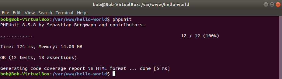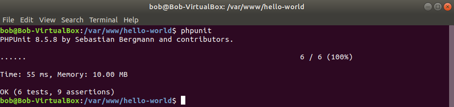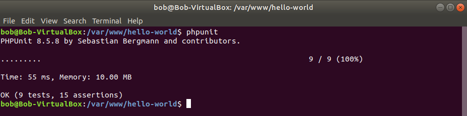 我们通过这个简单的 Hello World 程序已经介绍了大部分常用的 PHPUnit 功能。还有两个重要的功能 Fixtures 和 Mock 通过这个 Hello World 无法展示了,我们将其留到实战项目里。