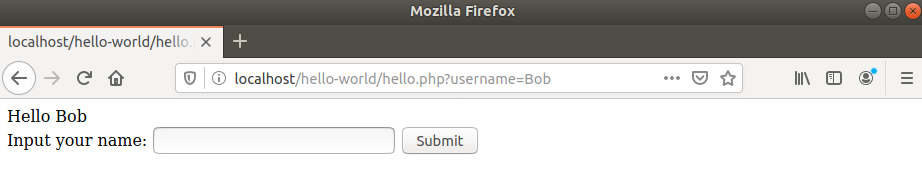 再次访问 http://localhost/hello-world/hello.php ,直接点击“Submit”,输入名字再次点击”Submit“,和重构前运行的一样,完全没问题。