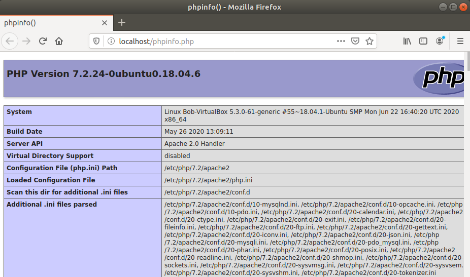 1 bob@Bob-VirtualBox:~$ echo '<?php phpinfo();' > /var/www/phpinfo.php