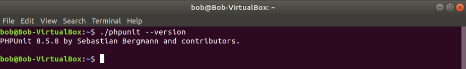 1 bob@Bob-VirtualBox:~$ phpunit --version