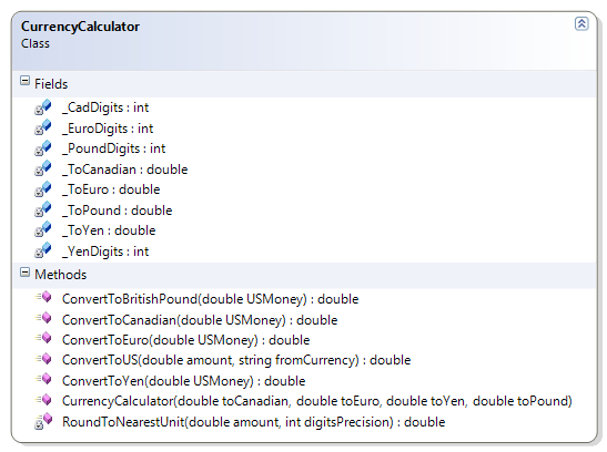 - CurrencyCalculator – This exercise extends the previous CurrencyCalculator exercise by allowing the conversion from a foreign currency to US dollars.