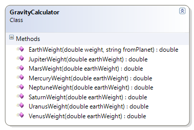 This exercise extends the previous GravityCalculator exercise by allowing the conversion to a weight on Earth from a weight on another planet in our solar system.