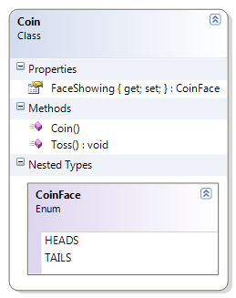 - Coin + CoinFace – The CoinFace enumeration helps to describe the tw * sides of a Coin, which can then be used in a tossing game.