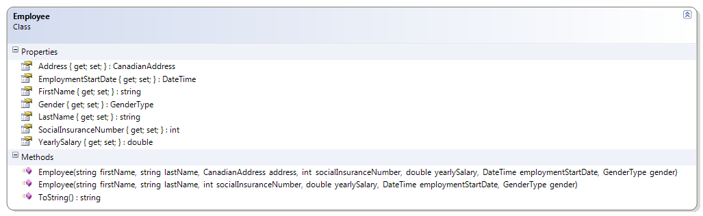 - Employee/Student + CanadianAddress + Province – The Employee and Student classes now have address information.