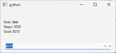 self._user_name. Simulate getting the currently logged-in user name and assign it to this field.self._steps. This field is initialized with zero.self._daily_goal, initialized with thedaily_goalparameter.