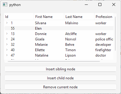 row + 1under the curent index’s parent, placing the new node below the selected one at the same level. - Insert child inserts a new row under the current index itself, making it a child of the selected node.