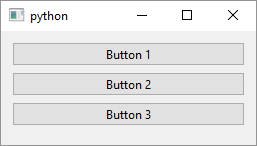 QVBoxLayoutinstance and set it as your window layout withsetLayout(). This also works for anyQWidgetsubclass. You can nest layouts inside other layouts to achieve complex layouts.Create widgets you want to lay out. Here we create three