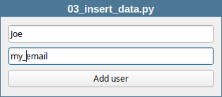 44 INSERT INTO Users (username, email) VALUES ('jane_smith', 'jane@example.com');