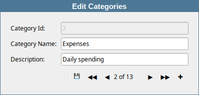 Your finance app needs an interface for managing categories one record at a time. You are asked to implement a reusable single record form with navigation controls. |