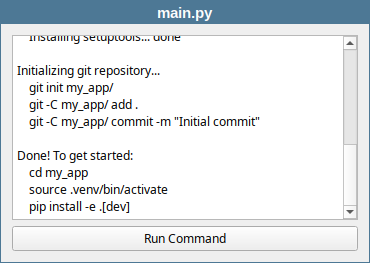 You are building a GUI tool that needs to run an interactive Python script that prompts for a project name, author, and Python version and creates a Python project based on the entered values. Instead of prompting the user each time, you want to feed predefined values via stdin automatically. |