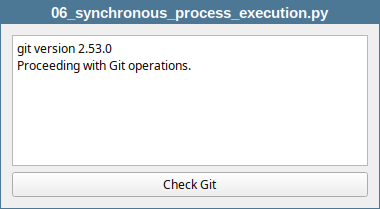 All the previous examples in this chapter use asynchronous process exexution: start a process, connect signals and let the event loop handle the rest. Sometimes, however, you want to vait for a process to finish before proceeding. Common scenarios include: