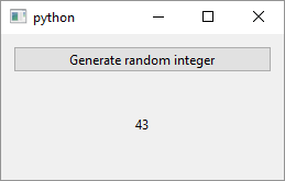 on_button_clicked()and sets a label’s text to a random integer. Note that the label is added toWindowas an instance variable so we can access it from the slot.Connect the button’s