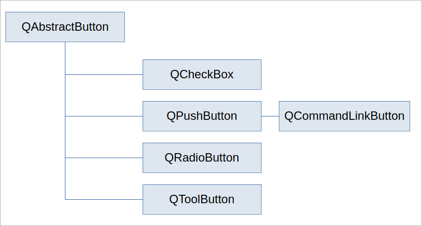 Qt provides several button classes, all inheriting from QAbstractButton: