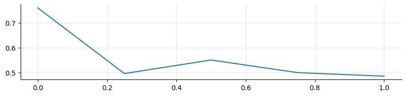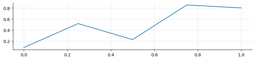 ax.plot([0, 0.25, 0.5, 0.75, 1.0], np.random.random(5))